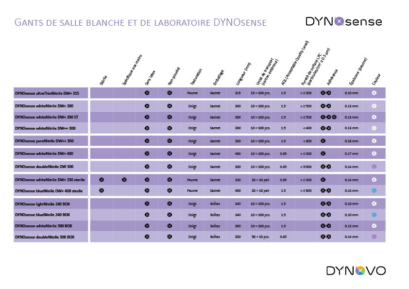 Pour vous aider à choisir les gants adaptés à votre application spécifique, nous mettons à disposition un tableau comparatif pratique de nos gants DYNOsense. Ce tableau offre une vue d’ensemble détaillée des différentes caractéristiques de nos gants, notamment matériaux, longueurs, catégories de protection, et plus encore. La comparaison directe vous permet d’identifier rapidement les gants qui répondent le mieux à vos exigences. Pour déterminer la taille correcte, notre Dynosizer est également disponible sous forme de gabarit imprimable – vous pouvez le télécharger directement.